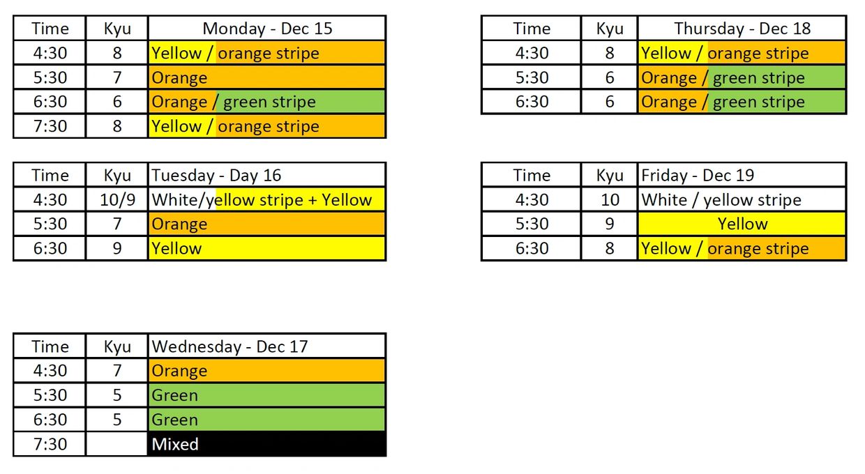 All students will be automatically added to the exam schedule based on their current belt level. If you need to adjust your child’s exam time, please let us know in advance — we will do our best to accommodate.